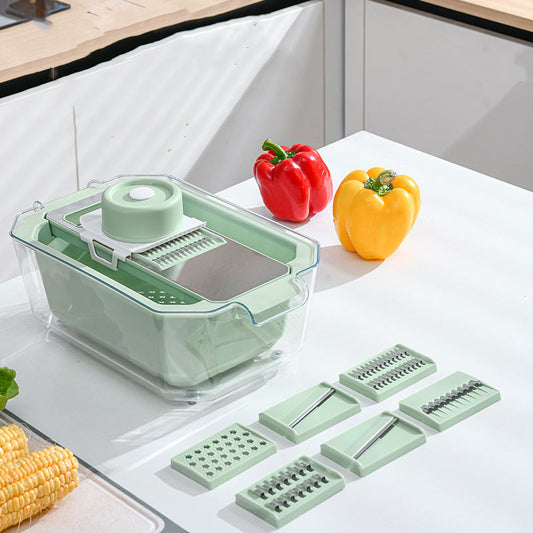 Râpe à légumes multifonction avec panier égouttoir intégré